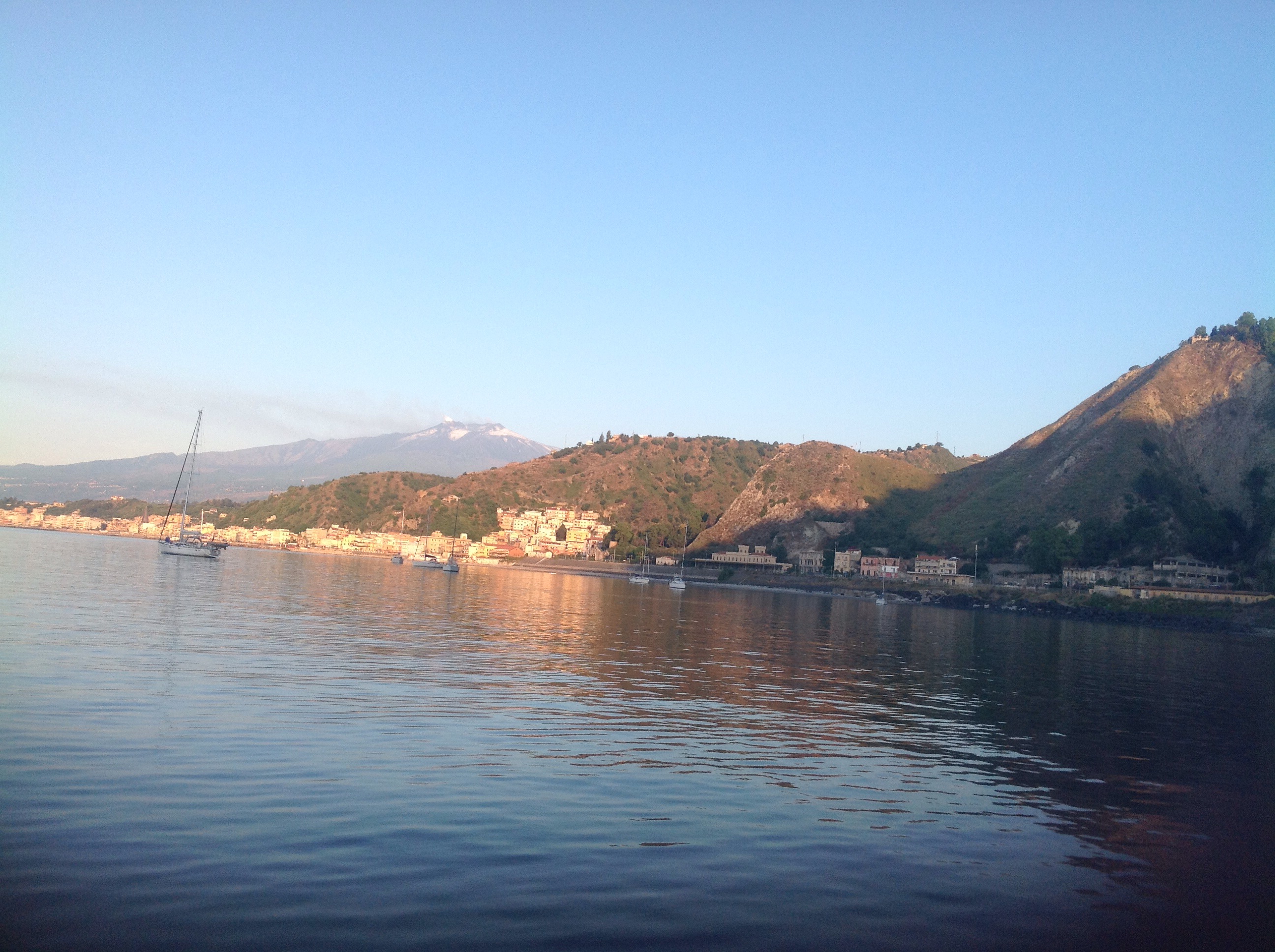 Delighted to say our parcel arrived so we’ve got the gypsy, hurray! It’s bright and shiny, I just want to kiss it. We stopped at Riposto marina for the night, http://www.portodelletna.com, first impressions are so easily clouded as within 20 mins of tying up there was thunder, rain and gusts of wind. I wasn’t happy, but then the sun came out and we went exploring. Loved the market, such beautiful fresh produce and the fish? Outstanding! Bought a bounty of reasonably priced goodies and got very excited with the asparagus and gorgeously ripe avocados (food excites me, what can I say?). Asparagus is going to be lightly roasted then dipped into soft boiled eggs 🙂