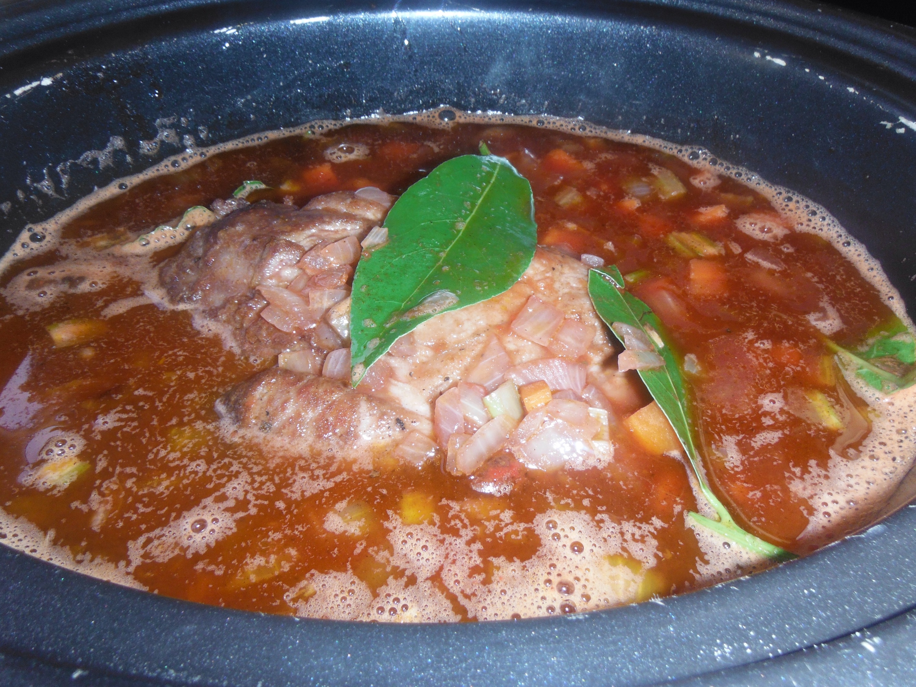 Transfer the whole lot to slow cooker and cook on the high setting for 6 hours.