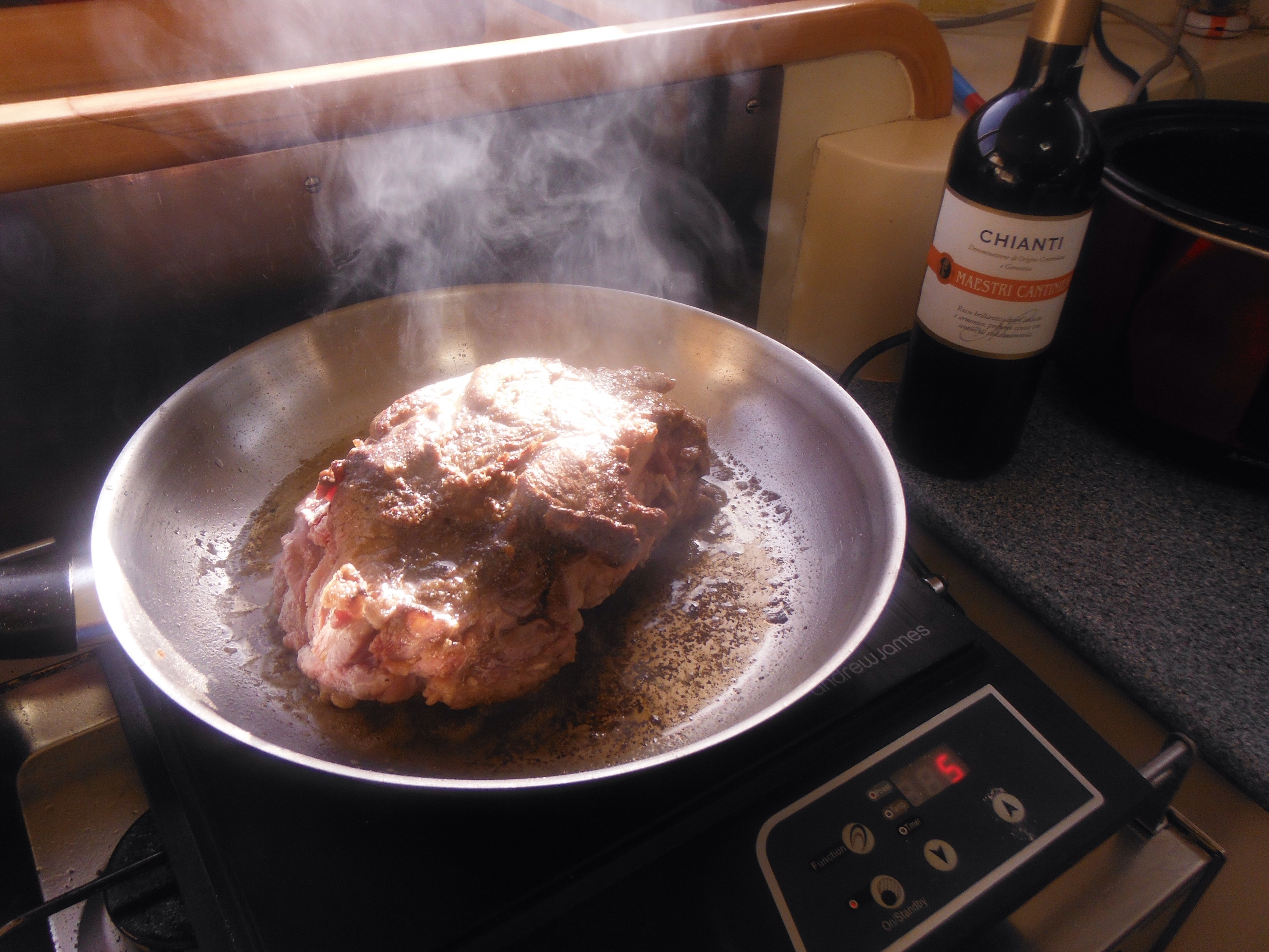 800g beef shin (I thought we’d have leftovers, boy did that meat shrink!) Dust the whole joint in seasoned flour and sear until browned evenly. Remove from pan.
