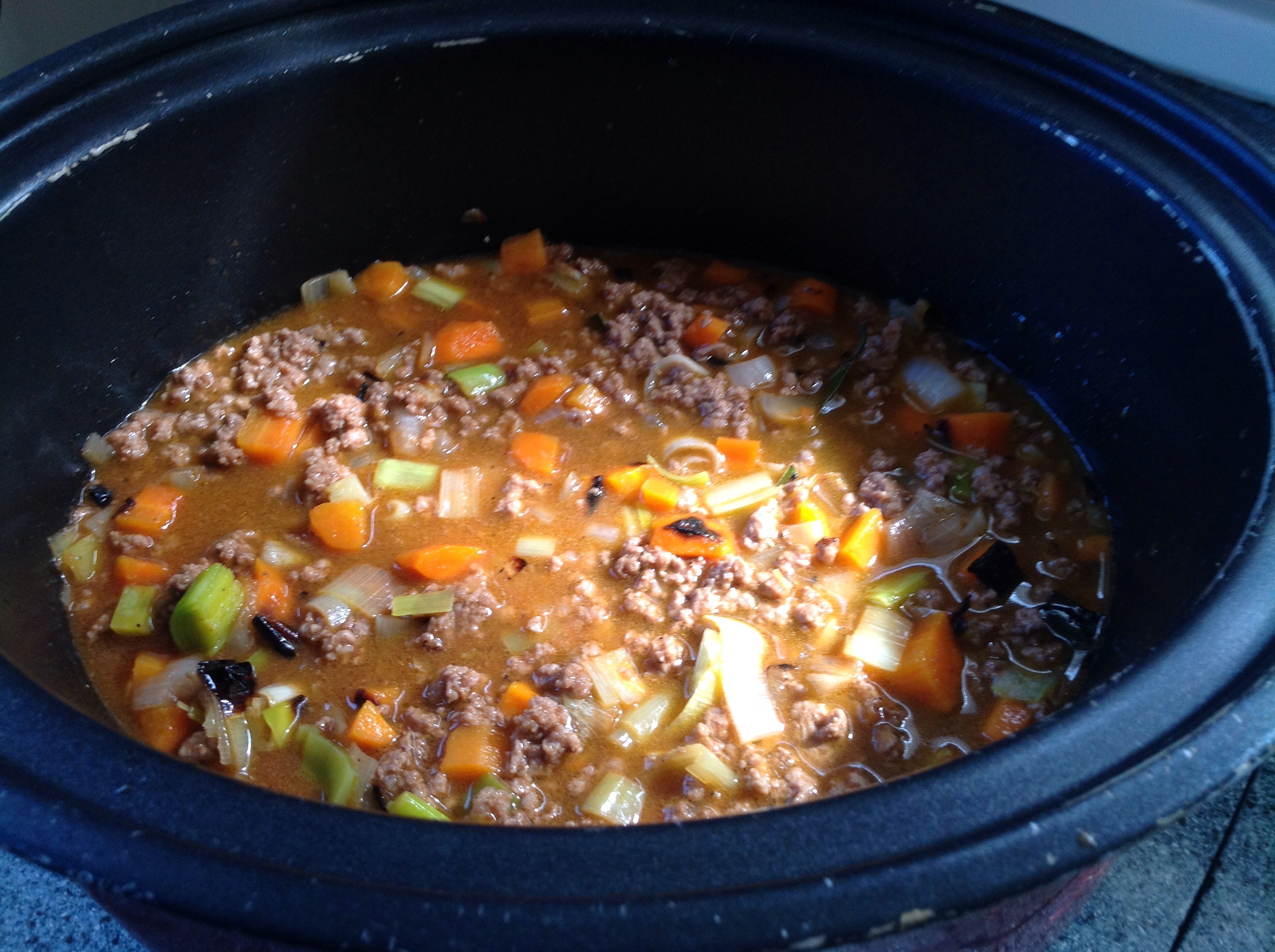 On the hob simmer for about 30 minutes. In the slow cooker just leave it on high until you’re ready to add the topping. If the gravy is too thin just boil for a couple of minutes to reduce. Pour mixture into a oven dish and top with cauliflower purée. Bake at 190 degrees for half an hour.