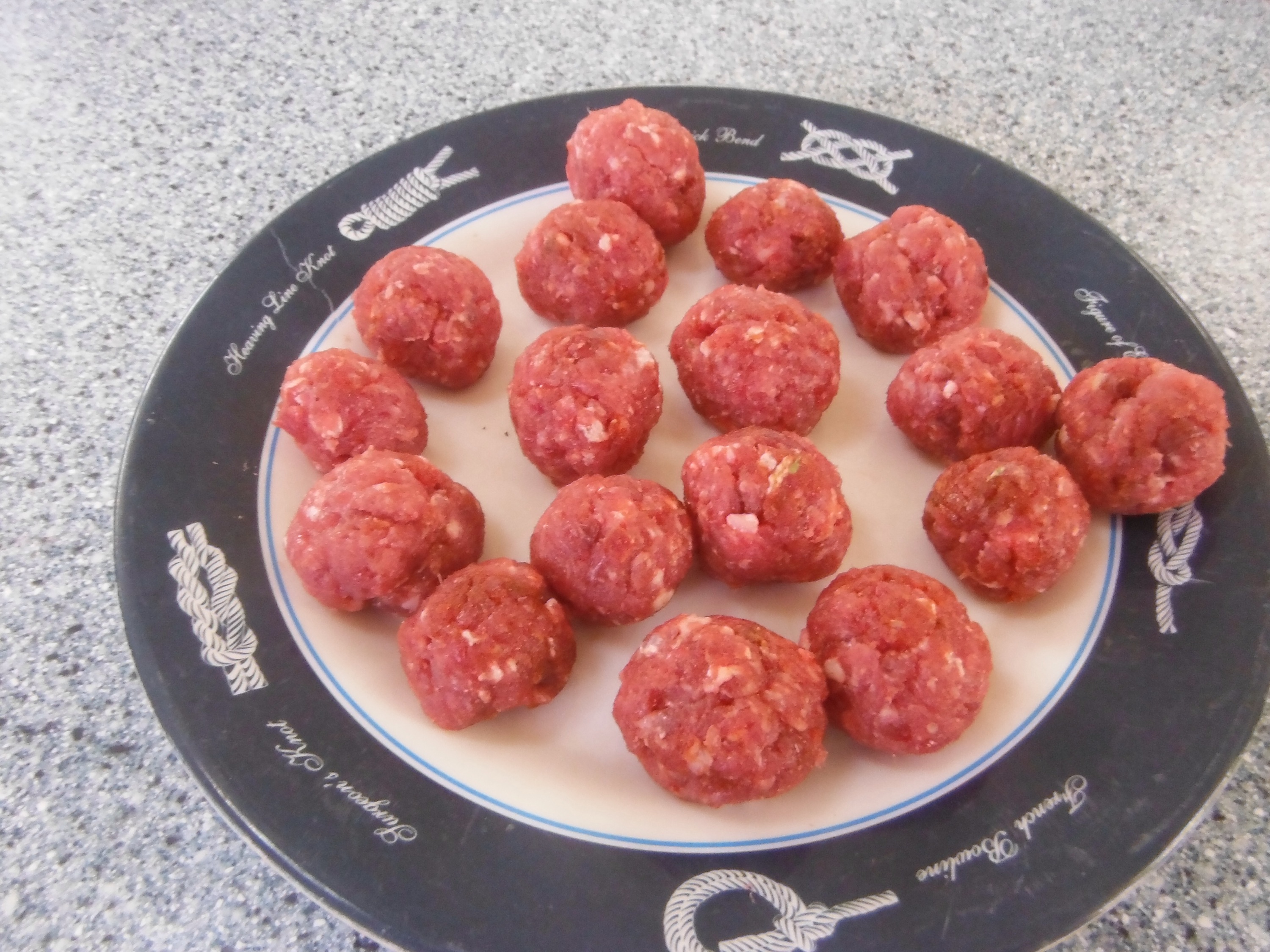 The teeny tiny bit? Ok, I always start with the best intentions but gradually my meatballs get bigger as I lose patience…today will be different! Hey, I tried!