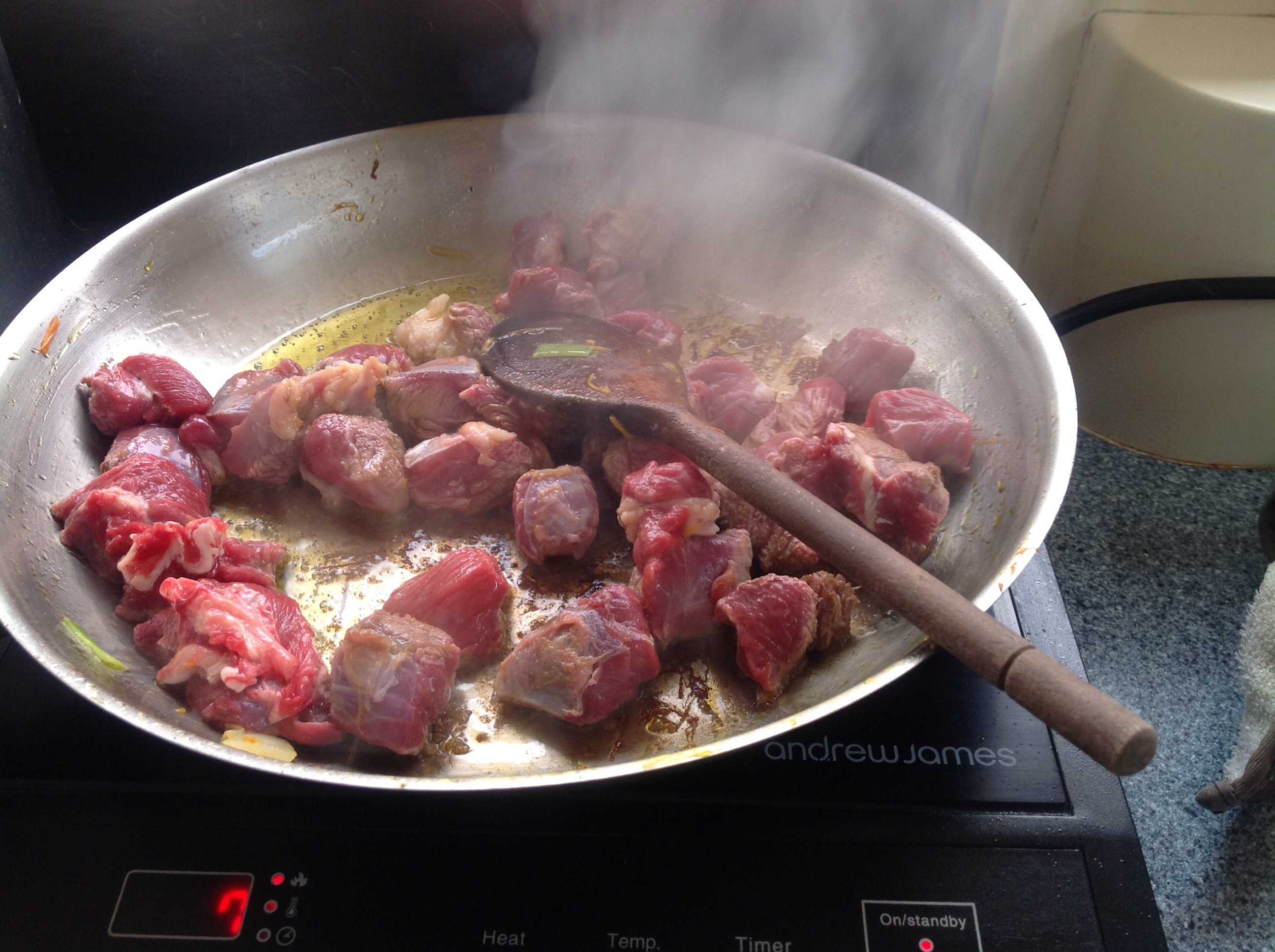 This is one of my youngest daughters favourite meals, wow can she shovel it away! Simplicity itself, as most things here are, but packed full of flavour and lots of vegetables. Improves if you make it a day ahead! I put far more veg in than meat so am giving method rather than measures.
