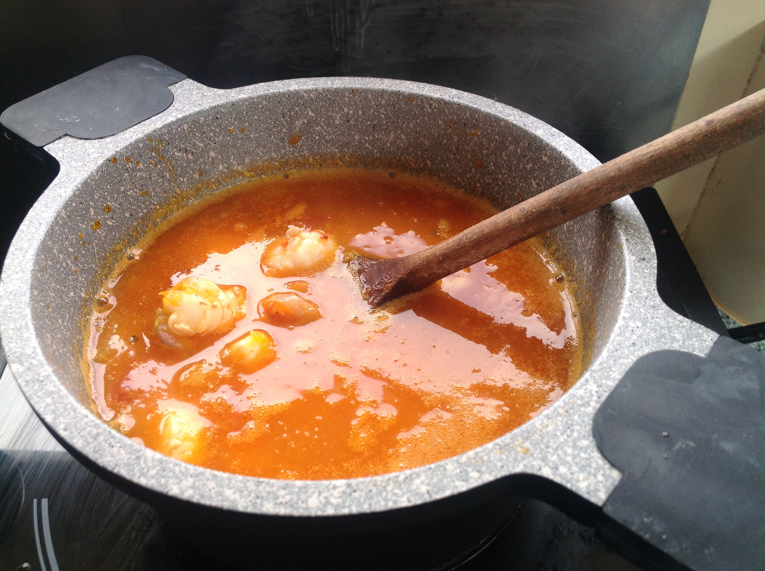 For the fish stock either make your own as in the Fish Pie from last week or use bought stock. I must admit making my own in the boat leaves a fishy smell for a couple of days…